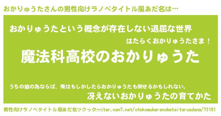 | 女子向けラノベタイトル風あだ名 | 『おかりゅうたなんてお断りですっ。』 |