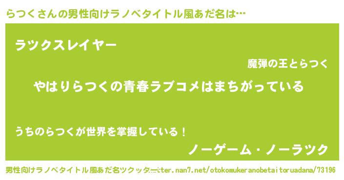 | 女子向けラノベタイトル風あだ名 | 『らつく伯爵の花嫁』『らつく恋絵巻』 |