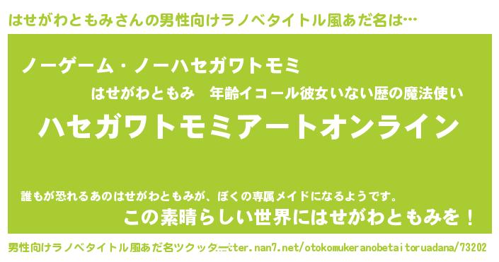 はせがわともみさんの男性向けラノベタイトル風あだ名をツクッター!