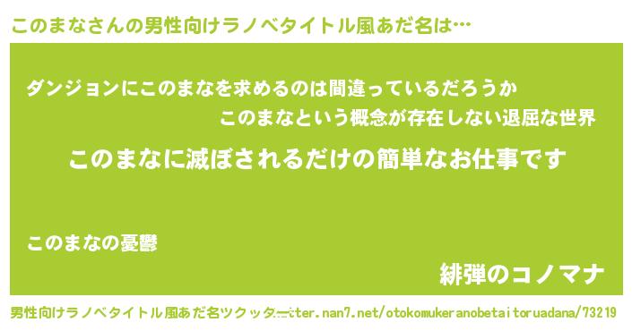 | ヒーロー風カッコイイあだ名 | 『幻影騎士コノ』『ネオコノマナ』 |