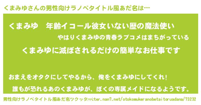 | 意味不明あだ名 | 『ニラ科くまみゆ属』『永久保存くまみゆ』 |