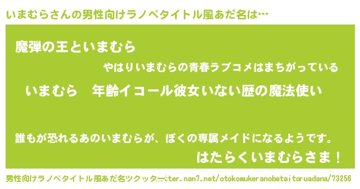 | ヒーロー風カッコイイあだ名 | 『仮面イマダー』『ウルトラいまむらマン』 |