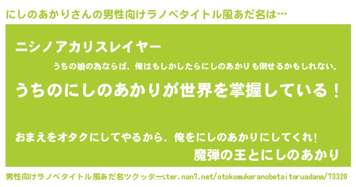 | ヒーロー風カッコイイあだ名 | 『仮面ニシダー』『ネオニシノアカリ』 |