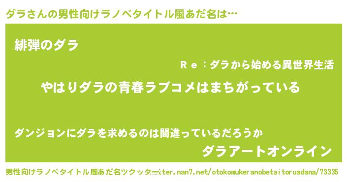| 女子向けラノベタイトル風あだ名 | 『ダラの雑貨屋さん』『闇のダラ』 |