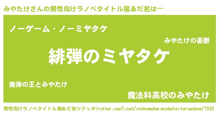 | ヒーロー風カッコイイあだ名 | 『正義の使者みやたけ』『仮面ミヤダー』 |