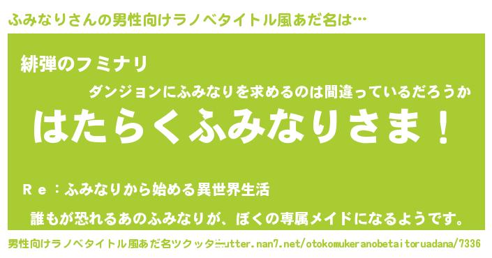 | 意味不明あだ名 | 『永久保存ふみなり』『自称ふみなり』 |