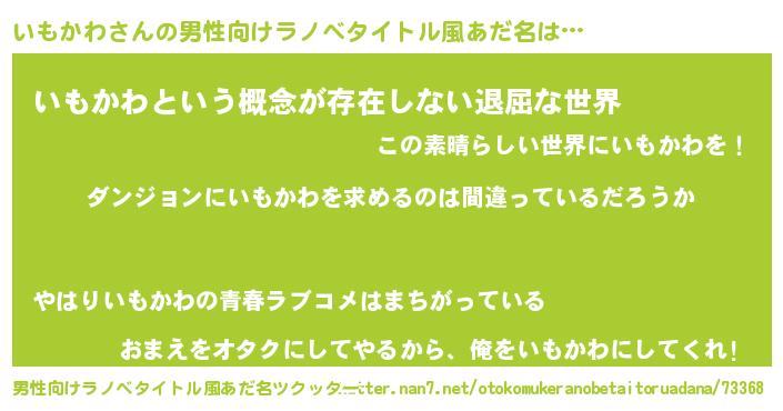 | 女子向けラノベタイトル風あだ名 | 『いもかわは平凡を望む』 |
