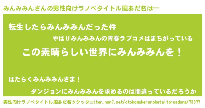 | 胡散臭い通販商品みたいなあだ名 | 『あなたにだけ特別に提供する世界で10本だけ現存している希少なブランデー…その名も「みんみみん」』 |