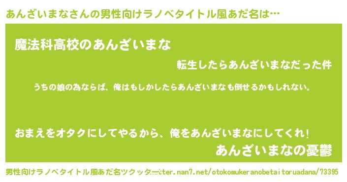| 胡散臭い通販商品みたいなあだ名 | 『運命の人と巡り会える高級そうな絵画…その名も「あんざいまな」』 |