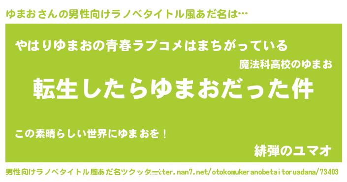| ヘコむあだ名 | 『なまこ酢』『ゆまもー』『ゆま太郎』 |