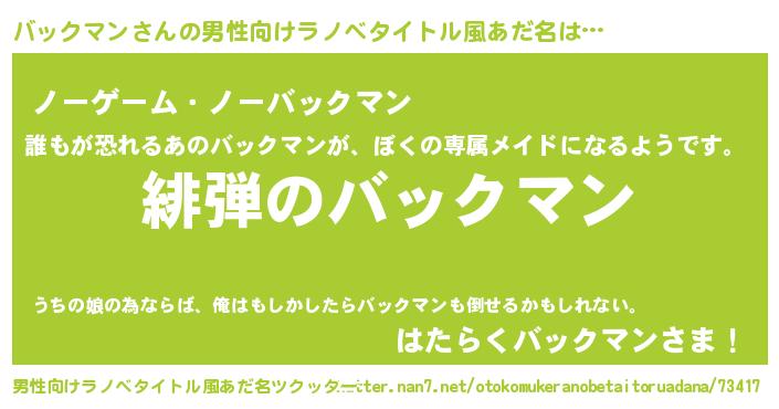 | 胡散臭い通販商品みたいなあだ名 | 『100人中100人が認めた隕石のかけら…その名も「バックマン」』 |