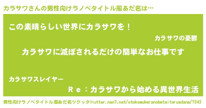 | 意味不明あだ名 | 『住所不定無職カラサワ(8歳)』 |