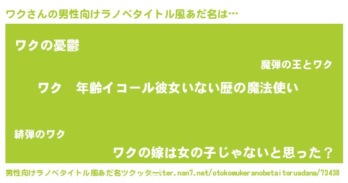 | 女子向けラノベタイトル風あだ名 | 『ワクの玉の輿計画!』『ワク様がみてる』 |