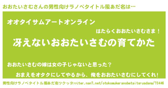 | 胡散臭い通販商品みたいなあだ名 | 『モテモテ間違いなし霊験あらたかなお札…その名も「おおたいさむ」』 |