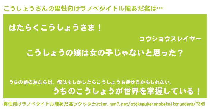 | 女子向けラノベタイトル風あだ名 | 『こうしょう様がみてる』 |