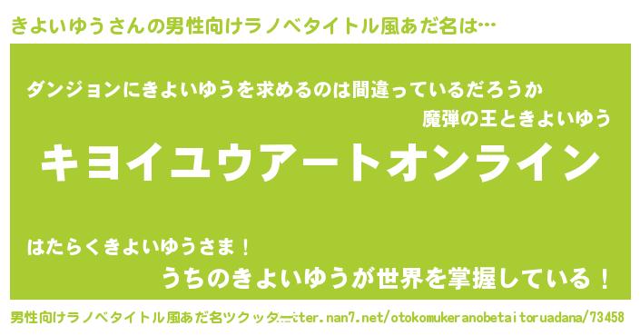 | ヒーロー風カッコイイあだ名 | 『スーパーキヨイユウ』『黄金騎士キヨ』 |