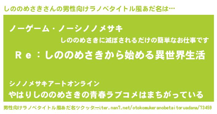 | 女子向けラノベタイトル風あだ名 | 『闇のしののめさき』 |