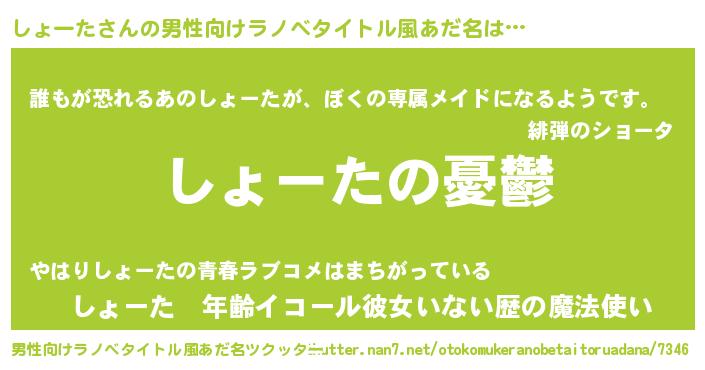 | 女子向けラノベタイトル風あだ名 | 『(仮)しょーたのやんごとなき事情』 |