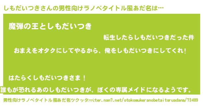 女子向けラノベタイトル風あだ名 | 『しもだいつき恋絵巻』 |