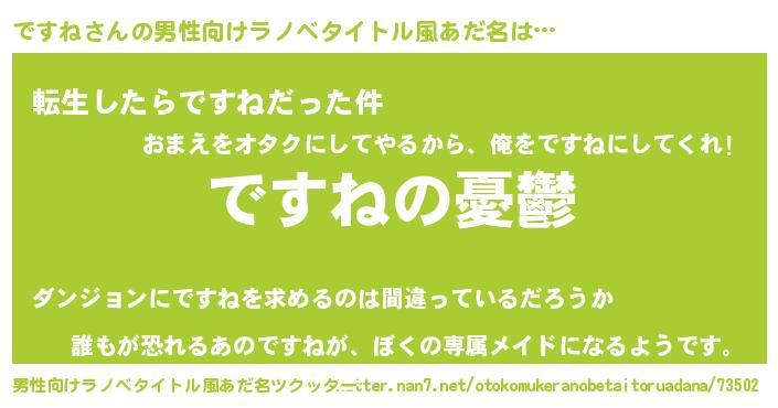| 胡散臭い通販商品みたいなあだ名 | 『必ず成功する水晶球…その名も「ですね」』 |