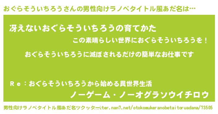 | ヒーロー風カッコイイあだ名 | 『慈愛の使者おぐらそういちろう』 |