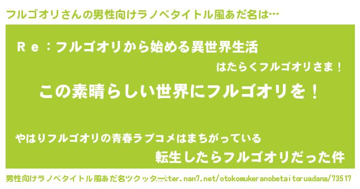 | 意味不明あだ名 | 『住所不定無職フルゴオリ(56歳)』 |