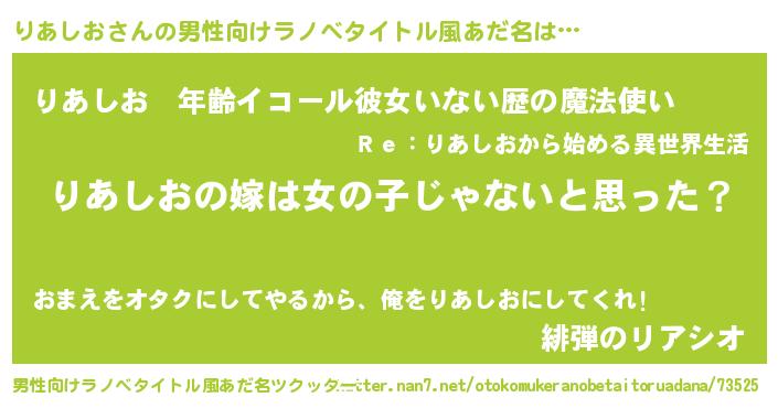 | 女子向けラノベタイトル風あだ名 | 『りあしお様がみてる』 |