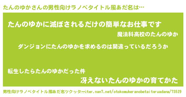 | 胡散臭い通販商品みたいなあだ名 | 『信頼と実績のネックレス…その名も「たんのゆか」』 |