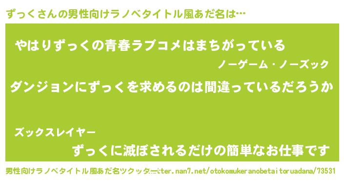 | 女子向けラノベタイトル風あだ名 | 『ずっくは平凡を望む』『ずっく恋絵巻』 |