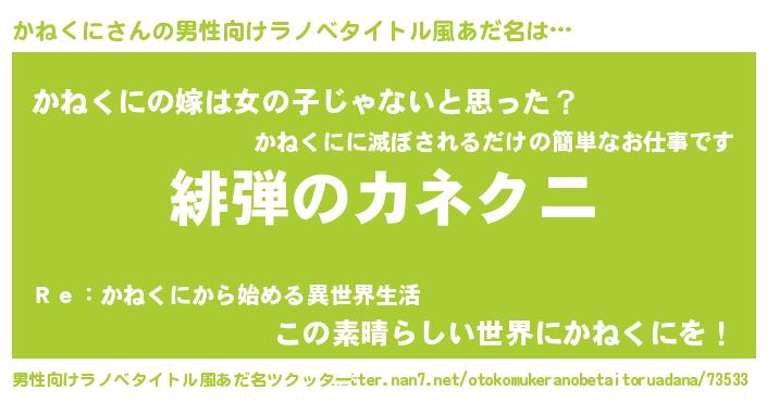 かねくにさんの男性向けラノベタイトル風あだ名をツクッター!