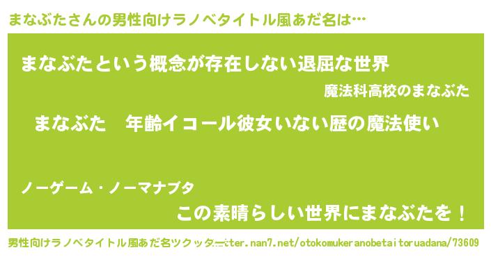 | 女子向けラノベタイトル風あだ名 | 『まなぶたの玉の輿計画!』 |