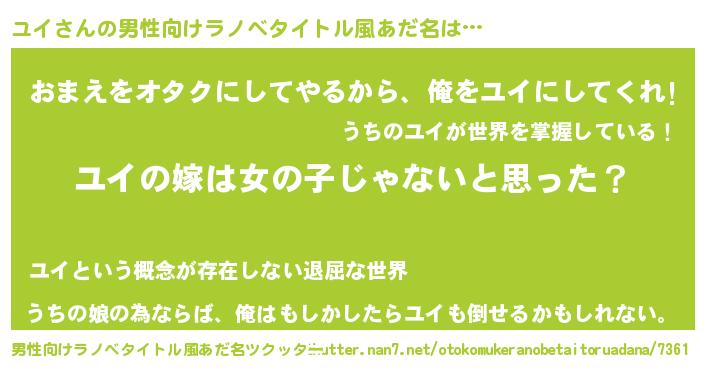 | 意味不明あだ名 | 『とにかく怪しいユイ』『永久保存ユイ』 |