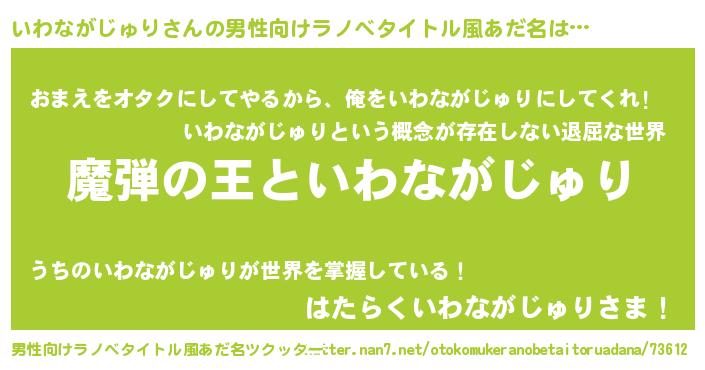 | 女子向けラノベタイトル風あだ名 | 『いわながじゅりが死なない童話 林檎のいわながじゅりの診療簿』 |