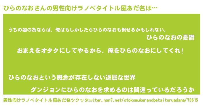 | ヒーロー風カッコイイあだ名 | 『正義の使者ひらのなお』『暗黒騎士ヒラ』 |