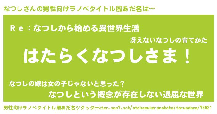 | 意味不明あだ名 | 『自称なつし』『永久保存なつし』 |