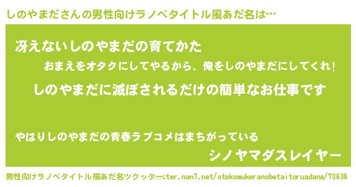 | ヒーロー風カッコイイあだ名 | 『慈愛の使者しのやまだ』『仮面シノダー』 |