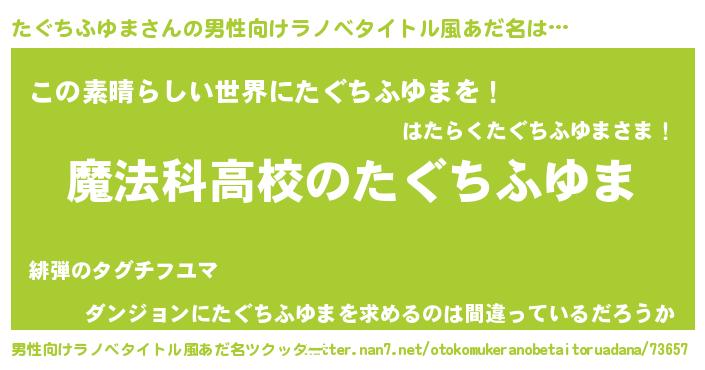 | 肩書あだ名 | 『たぐちふゆま閣下』『たぐちふゆま教官』 |
