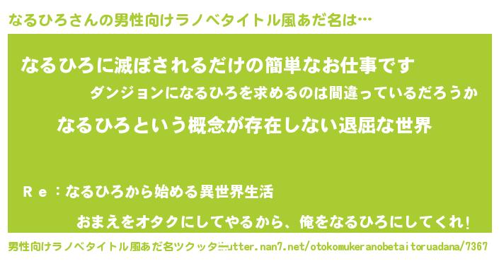 | 女子向けラノベタイトル風あだ名 | 『異世界で失敗しない100のなるひろ』 |