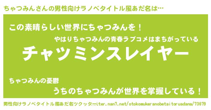 | 料理風あだ名 | 『ちゃつみんごはん』 |
