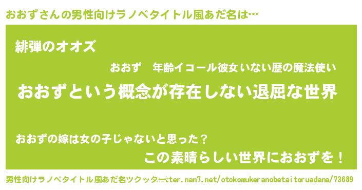 | 女子向けラノベタイトル風あだ名 | 『異世界で失敗しない100のおおず』 |