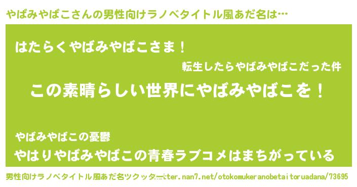 | 意味不明あだ名 | 『住所不定無職やばみやばこ(4歳)』 |