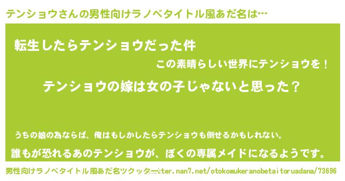 | ヘコむあだ名 | 『テンっ子』『テンショウ(笑)』 |