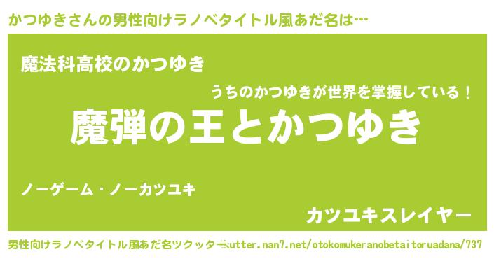 | ヒーロー風カッコイイあだ名 | 『仮面カツダー』『超時空戦士カツユキ』 |