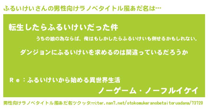 | ヒーロー風カッコイイあだ名 | 『暗黒騎士フル』『正義の使者ふるいけい』 |