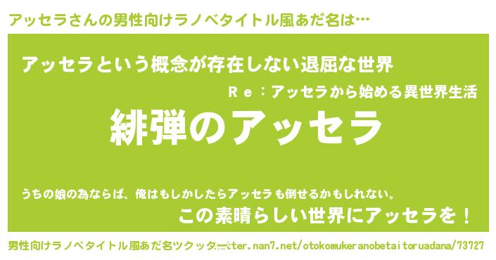 | 意味不明あだ名 | 『永久保存アッセラ』『自称アッセラ』 |