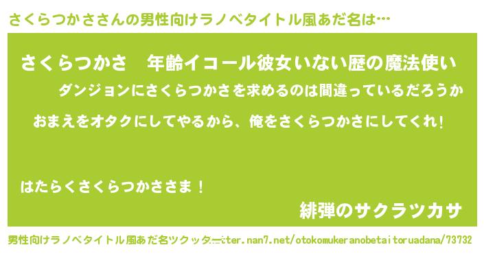 | 女子向けラノベタイトル風あだ名 | 『さくらつかさ夫妻のなれそめ』 |