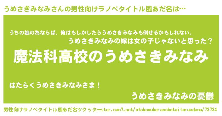 | 女子向けラノベタイトル風あだ名 | 『うめさきみなみなんてお断りですっ。』 |