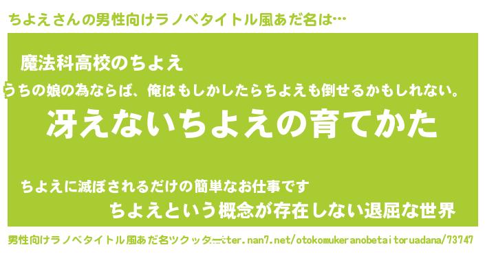 | 意味不明あだ名 | 『自称ちよえ』『永久保存ちよえ』 |