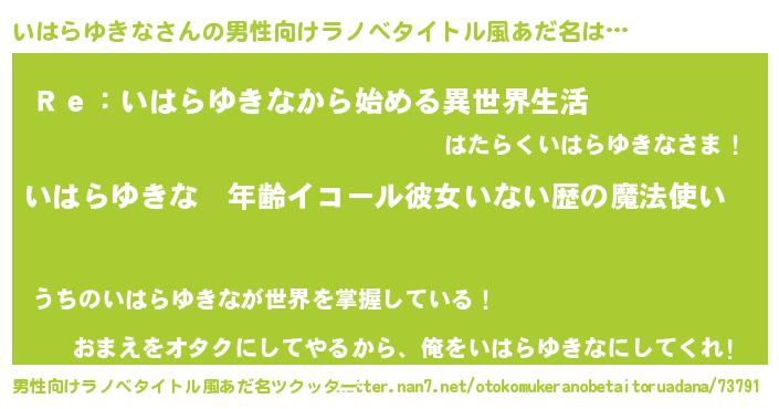 | 肩書あだ名 | 『いはらゆきな中将』『いはらゆきな総統』 |