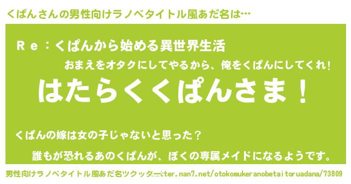 | 意味不明あだ名 | 『自称くぱん』『永久保存くぱん』 |